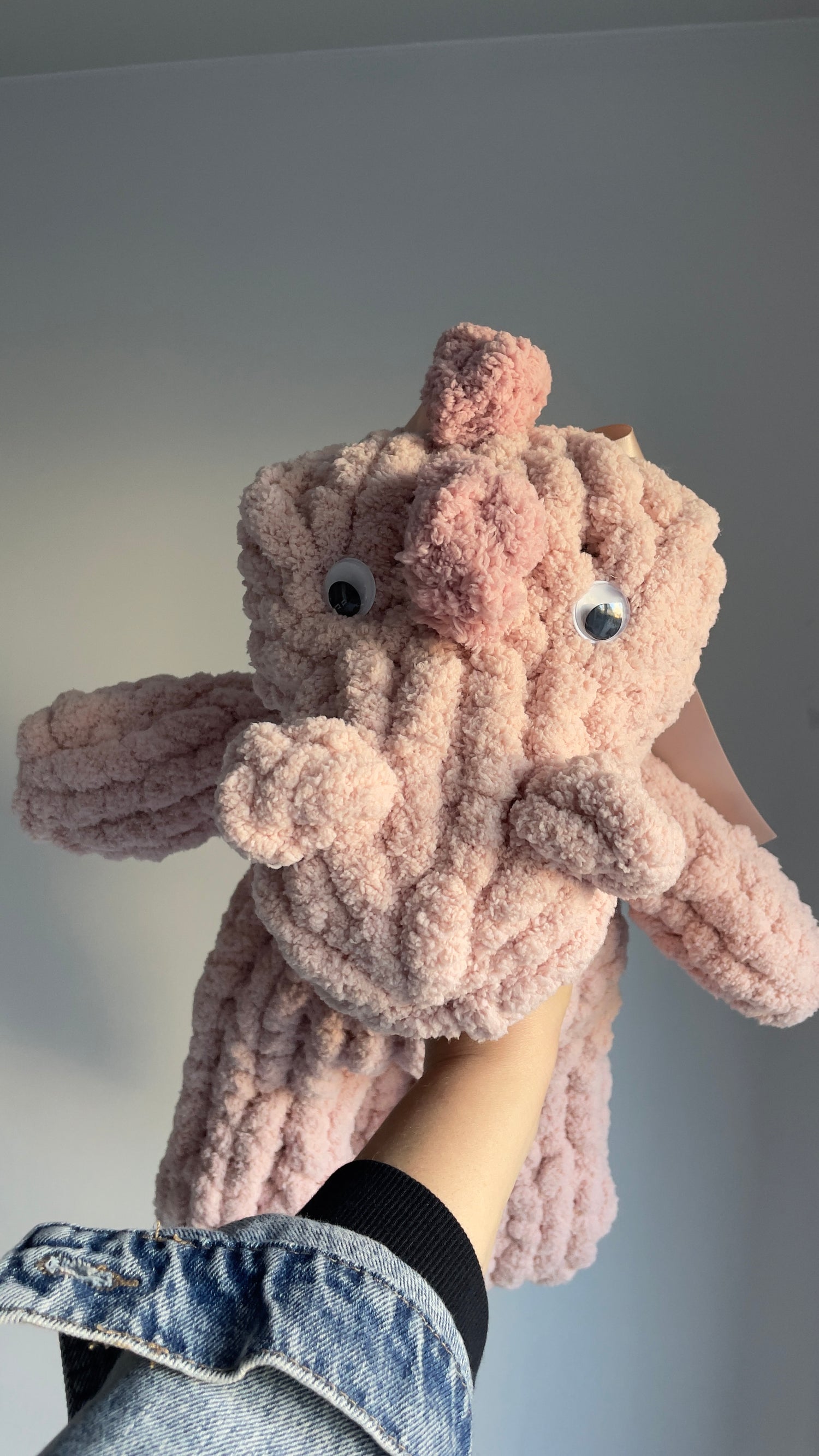Meet your new favourite cuddle buddy! This adorable handmade plush dinosaur is crafted from ultra-soft chenille yarn (100% polyester) for a cozy, cloud-like feel.