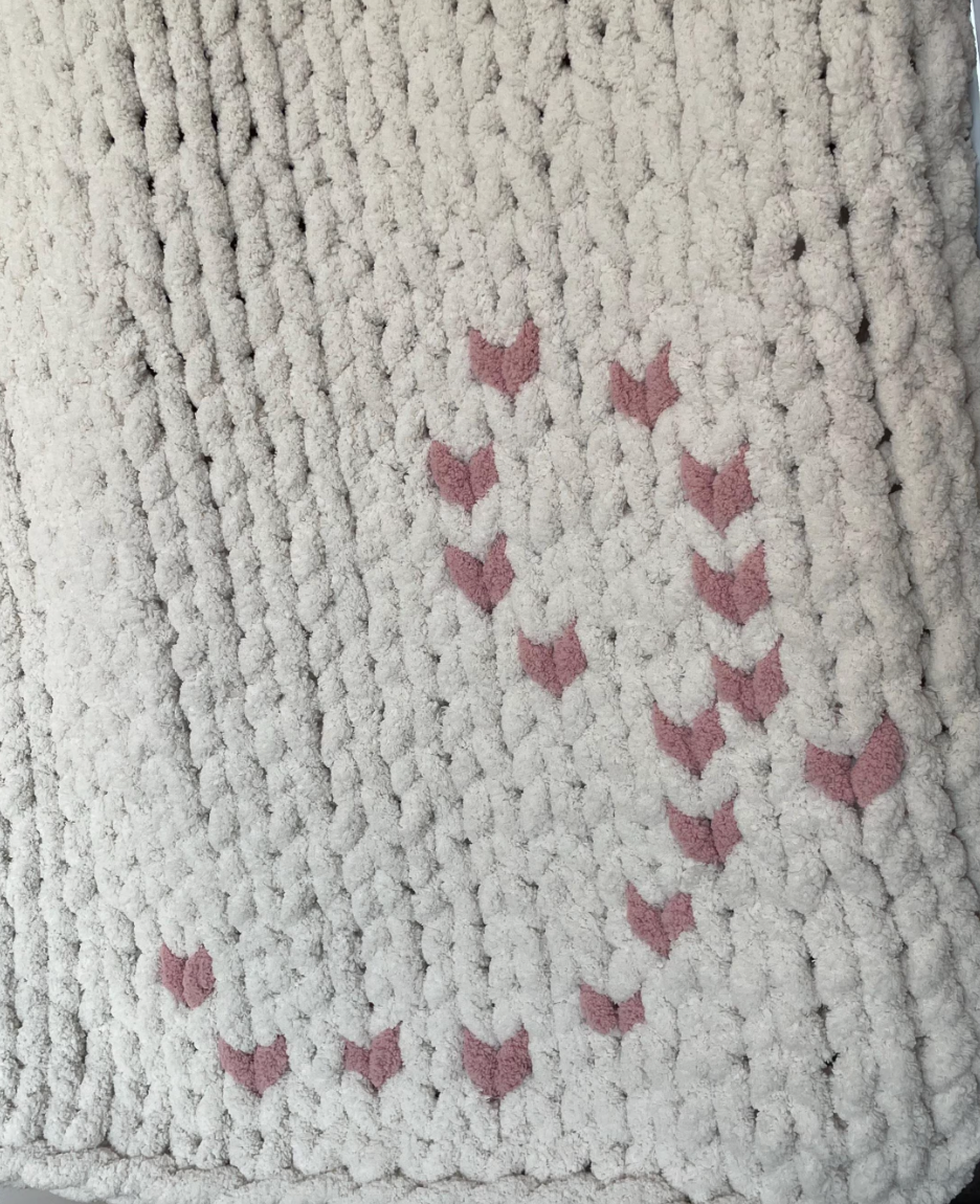 HANDKNIT PATTERN ~ Breast Cancer Ribbon Blanket Pattern ~ Chunky Chenille ~ DIY