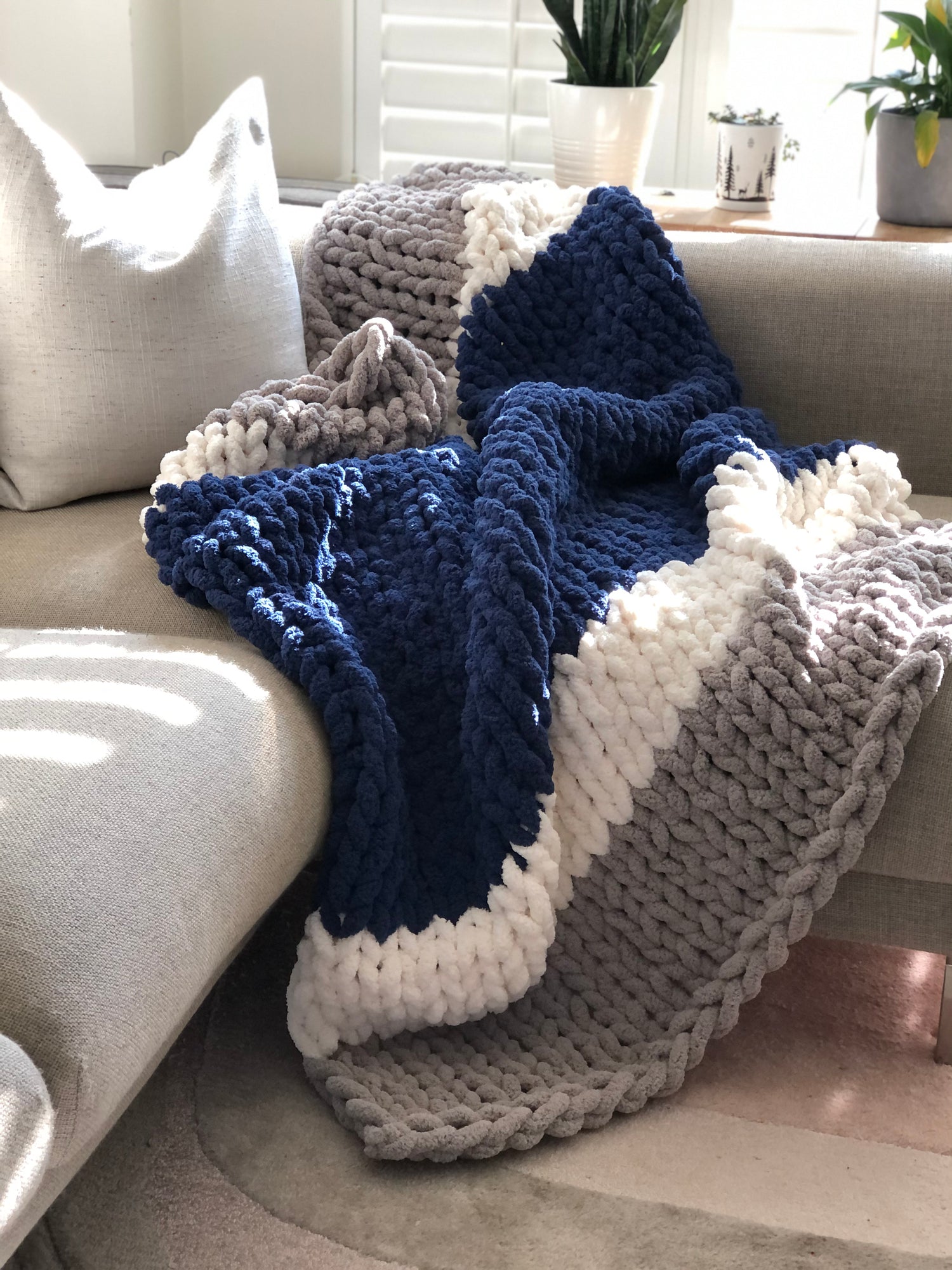 Healing Hand, Chunky Knit Blankets Blue Jay