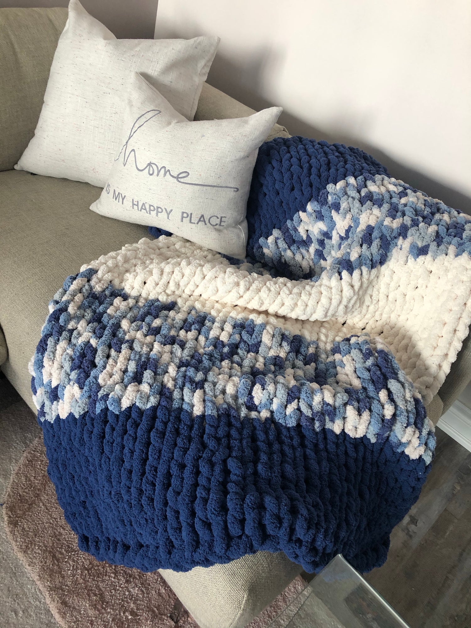 Healing Hand, Chunky Knit Blankets Navy Blue